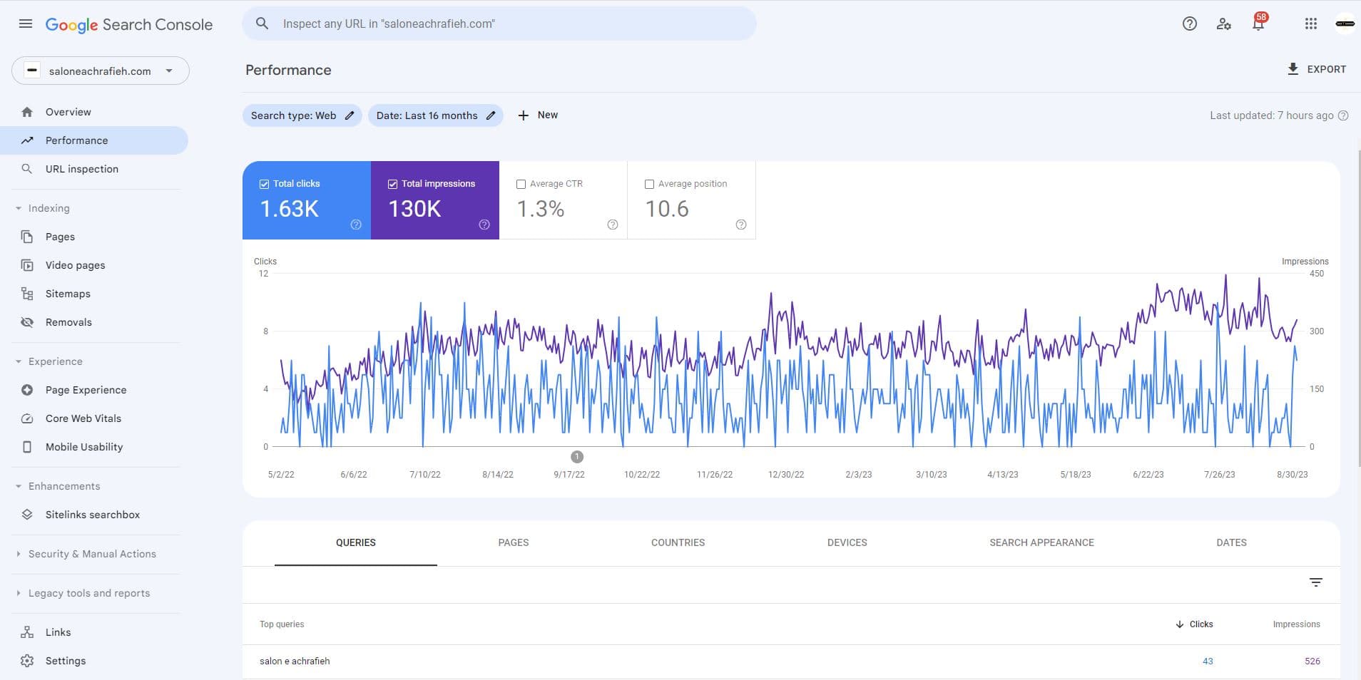 Years of consistent SEO maintenance and strategic efforts paid off handsomely. As of September 2023, Salon E Achrafieh proudly occupies the top position on Google's search results for vital keywords. This remarkable achievement has not only elevated the salon's status but has also translated into real-world success.